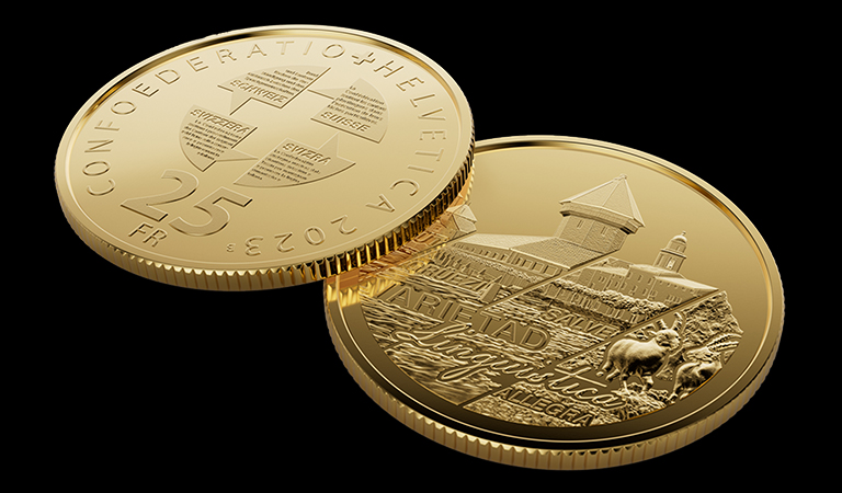 La monnaie spéciale « Diversité linguistique » est en or 900 et pèse 5,64 g. Les quatre régions linguistiques sont représentées sur l’avers, de gauche à droite : la Suisse romande, la Suisse alémanique, la Suisse italienne et la Suisse romanche. Elles sont habilement reliées pour créer une seule image : 4 langues, 4 régions, une Suisse. Le titre de la monnaie «Varietad Linguistica» provient du rumantsch grischun et rend hommage au cinquième alinéa de l’art. 70 de la Constitution: «La Confédération soutient les mesures prises par les cantons des Grisons et du Tessin pour sauvegarder et promouvoir le romanche et l’italien». Sur le revers figurent quatre bulles de texte, une pour chaque région linguistique. Elles forment une croix suisse, symbole de l’appartenance à la Confédération. Les quatre bulles de texte contiennent des citations de l’art. 70 de la Constitution. En allemand, il s’agit de l’alinéa 3, qui constitue la base de la promotion du plurilinguisme, en français, de l’alinéa 4, qui garantit le soutien de la Confédération aux cantons plurilingues et, en italien et en romanche, de l’alinéa 5, qui garantit aux cantons des Grisons et du Tessin le soutien de la Confédération pour la sauvegarde et la promotion du romanche et de l’italien. Le revers, dans le sens des aiguilles d’une montre, la mention CONFOEDERATIO HELVETICA, l’année d’émission 2023 et la valeur 25 FR.